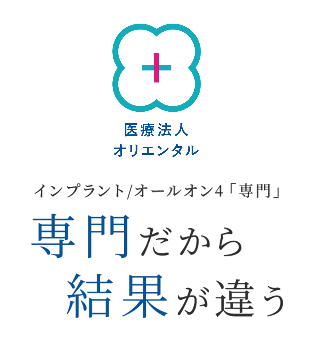 愛知県名古屋市/海部郡にある、インプラント、オールオンフォー(All-on-4)専門の歯医者、医療法人オリエンタル(名古屋駅前ファースト歯科/あまファースト歯科)。安心して治療に臨んでいただくため、専用オペ室、10年保証、歯科技工士による立会、治療後のインプラント周囲炎を防ぐメンテナンスを行っています。