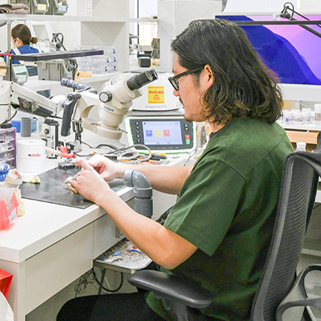 患者さんに合った自然な色合い、大きさ、形を分析し、デジタル化された院内技工室で歯を製作。見た目も劇的に変わります。