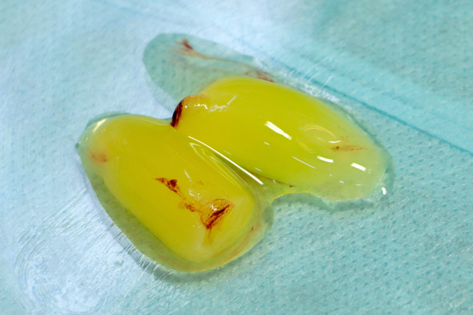 人間の血液には「成長因子」という体の回復を早める成分が含まれています。患者さん自身の血液からその成分を抽出し、濃縮したゲル状物質が「フィブリンゲル」です。