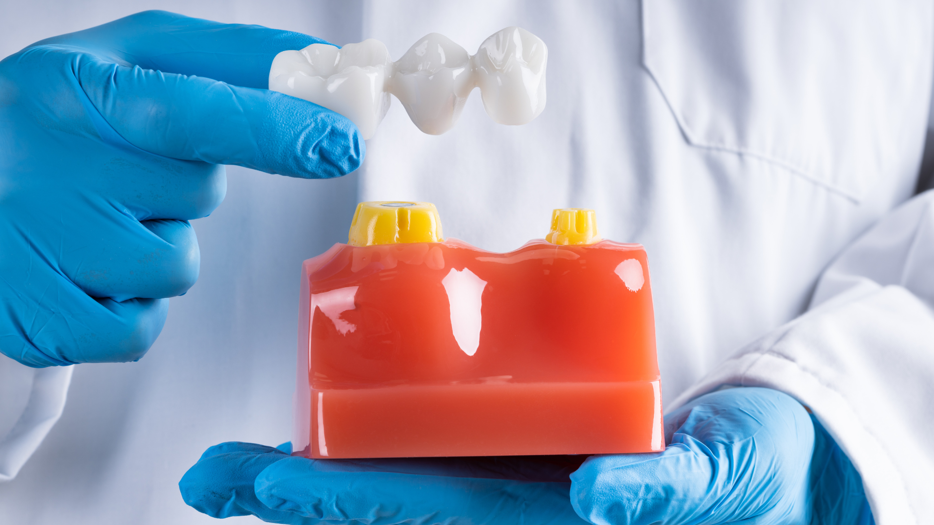 ブリッジは、両隣の歯を削って支えにし、人工歯を固定する方法です。